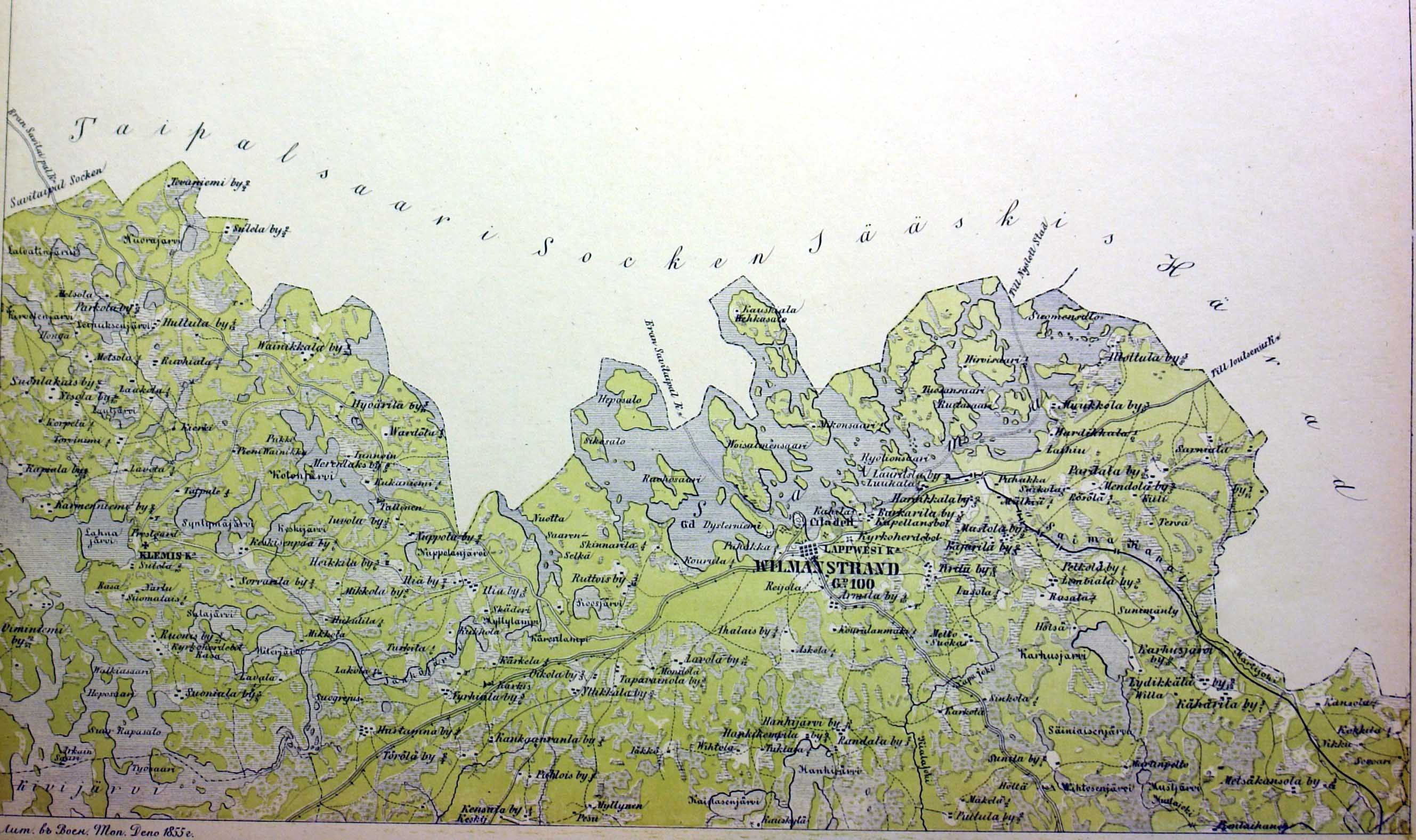Lappeenrannan seutu Kalmbergin kartastossa 1855